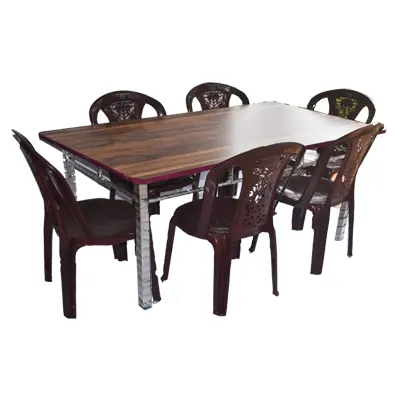 Dining Tables melamin with 6 plastic Chairs